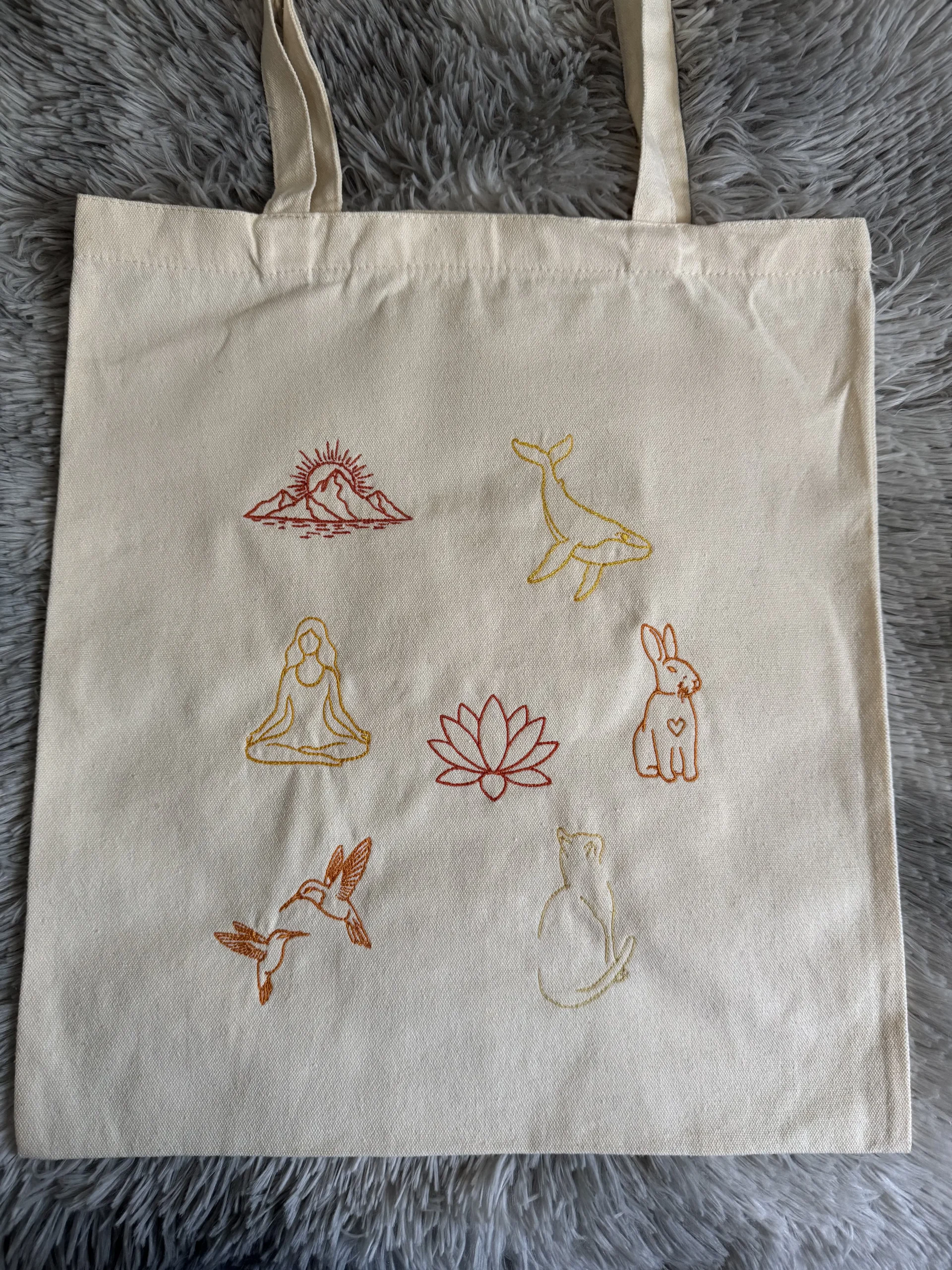 Incluye Tote Bag de lienzo de excelente calidad con bordado prediseñado o personalizado si lo deseas.