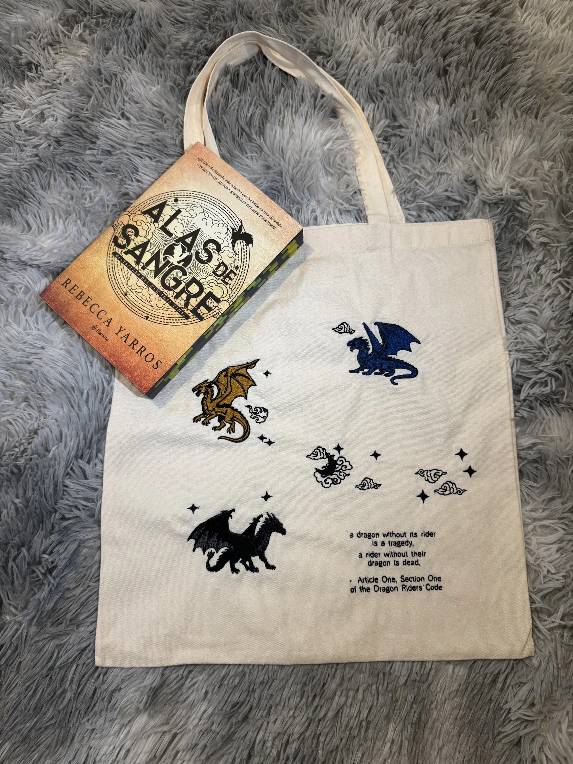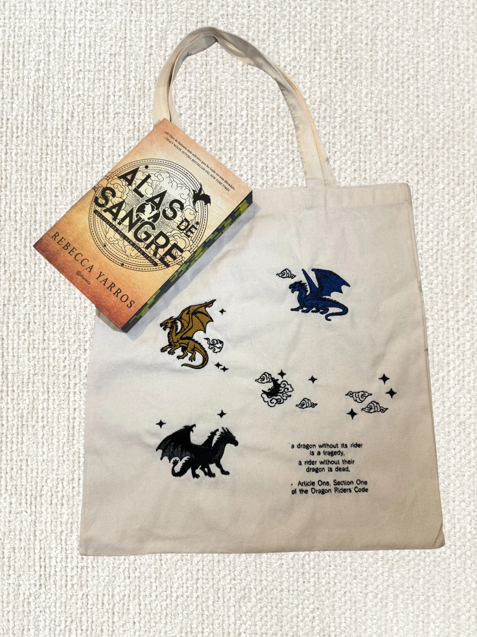 Incluye Tote Bag de lienzo de excelente calidad con bordado edición especial de Alas de Sangre.